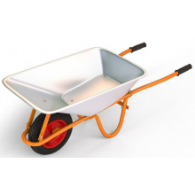 Die H.G. 11006040 Bau-Karre ist eine stabile Bau-Karre mit verzinkter Wanne und einem Stützpunkt. Sie fasst 90 Liter und hat im Rad einen Schlauch. Sie lässt sich dadurch leicht übers Geländer fahren. Einige Tonnen Bauschutt oder Gartenerde sind kein Problem für dieses Gerät. Bei einem Eigengewicht von 998 g ist sie selber ein richtiges Leichtgewicht und einfach zu handhaben. - Gewicht
