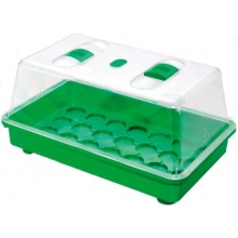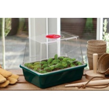 Das Garland Zimmergewächshaus High Dome - klein hilft Ihnen beim Keimen Ihrer Jungpflanzen auf der Fensterbank. Bei diesem kleinen Gewächshaus müssen Sie sich keine Sorgen machen, dass die Pflanzen zu feucht stehen. Eine spezielle Drainage sorgt für Abhilfe und versorgt die jungen Pflanzen mit ausreichend Wasser, es kann so nie zu Fäulnis oder Schimmelbildung kommen. Dieses Gewächshaus ist auch optimiert in seiner Größe, jedoch lassen sich genügend kleine Pflanzen bis zum Umtopfen ziehen.