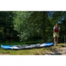 Mit diesem Kajak können auch Neueinsteiger auf einem See oder anderen ruhigen Gewässern ihren Ruderspaß haben. Das Kajak ist mit zwei Seitenkammern ausgestattet und einem PVC Boden, der einen Steg besitzt. Diese Konstruktion ist für Stärke und Strapazierfähigkeit ausgelegt. Außerdem besitzt dieses Boot aufblasbare, herausnehmbare Sitzkissen. Mit den Tragegriffen an Bug und Heck ist das Boot leicht zu transportieren - Aufblasbare Kajaks