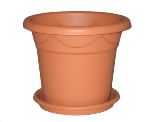 Der Blumentopf hat eine runde Form und einen Durchmesser von 180 Milimeter und einen praktischen Klick Untersetzer in der hübschen Farbe Terracotta. Der Pflanzentopf ist aus Kunststoff gefertigt und ist stabil und robust. Die Ornamente sind schlicht und geben dem Topf eine edle Ausstrahlung. Das Kunststoff Material ist Schlagfest und zudem im Winter Frostsicher.