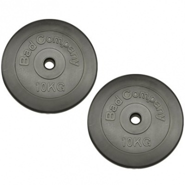 Die Hantelscheiben sind geeignet für den professionellen Einsatz zu Hause. In jeder Scheibe sind die KG-Angabe und das Logo des Herstellers, das Bad Company Logo, eingeprägt. Das Füllmaterial, eine verdichtete Zementmischung, ist mit robustem Kunststoff ummantelt. Das sorgt für eine leichte Reinigung und schont den Boden. Der Kunststoff ist schwarz/anthrazit. Die solide verarbeitete Hantel Scheibe wiegt 10 kg mit 33,5 cm Durchmesser und ist 5,6 cm dick, die Bohrungen messen 30/31 mm.