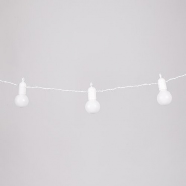 Die Gesamtlänge der Lichterkette beträgt 10 m, davon sind 5 m Zuleitungskabel. Jede einzelne Kugel ist inkl. Fassung 10 cm hoch, der Durchmesser misst 4,5 cm. Die Kugeln sind in einem Abstand von 25 cm angebracht. Alle 20 Fassungen sind mit einem Haken versehen, so lassen sich die Kugeln individuell in verschiedenen Höhen aufhängen. Die Kunststoffkugeln können einfach abgeschraubt werden, so ist es möglich, die Lichterkette staub- und schmutzfrei zu halten.