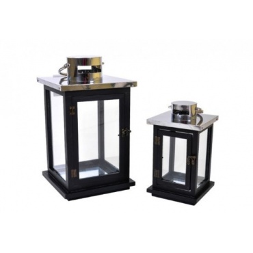 2tlgSet. Holz-Laterne schwarz mit Edelstahldach
