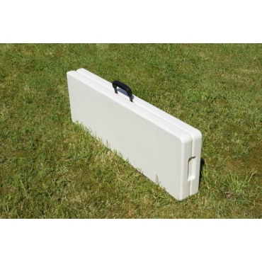 Praktische Campingbank mit weißer Optik, welche durch das Klappsystem schnelles und einfaches Verstauen ermöglicht und dabei noch platzsparend ist. Dank dem Material von Hartplastik mit einem Metallgestellt, ist die Campingbank jeder Witterung angepasst, egal ob die Sonne scheint oder sie dem Regen ausgesetzt ist. Mit einem Gewicht von 10 kg kann die Bank eine gewisse Stabilität aufweisen.
