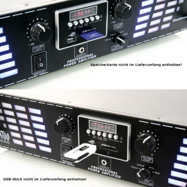Zum Abspielen von MP3-Dateien ist die 3000 Watt Party PA Anlage bestens geeignet. Doch auch ein Slot für die SD-Cart befindet sich auf der Vorderseite der Anlage. Das attraktive Display sticht ebenfalls ins Auge, um auch optische Vorzüge zu entfachen. Die verschiedenen Ein- und Ausgänge runden den Eindruck einer hochwertigen PA Anlage mit 3000 Watt ab und lassen den Partykeller neu erklingen. Es lohnt sich, mit diesem Gerät die Nachbarschaft lautstärkenmäßig unsicher zu machen.