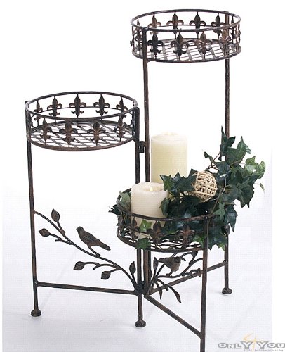Der Dreier Blümenständer Avis hat eine optimale Höhe von 64 Zentimeter und ist filigran verziert und aus robustem und pflegeleichtem Metall gefertigt. Das Metall ist nostalgisch rostbraun beziehungsweise antikbraun lackiert. Der Pflanzenständer ist sehr massiv und hat eine hohe Belastbarkeit. Die drei Körbe bieten ausreichend Platz für viele Blumen, die sich sehr wohl fühlen werden.