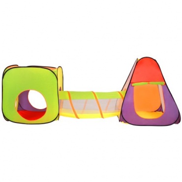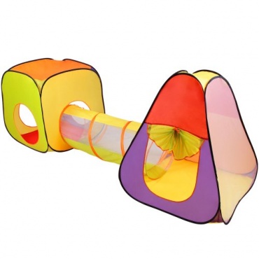 Das 3-teilige Kinderzelt von Infantastic ist ein wahrer Kindertraum. Es besteht aus einem Pyramidenzelt einem würfelförmigen Zelt und einem Tunnel. Die Zelte können getrennt aufgestellt werden als auch mittels des Tunnels miteinander verbunden werden. Die verwendeten Farben sind sehr bunt und ansprechend für das Kind. Das würfelförmige Zelt kann auch sehr gut als Bällebad benutzt werden. Das Aufbauen der Zelte geht dann Pop Up Funktion sehr schnell und einfach. Der Tunnel muss nur ausgerollt werden.