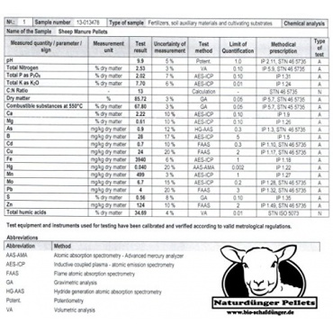Die Schafdünger Pellets sind ein Universal Naturdünger und eine klasse Alternative zu Düngemitteln mit chemischen Zusätzen. Hergestellt sind die Pellets aus biozertifizierter Schafhaltung. Der Schafdung wird bei 82 °C getrocknet, daher ist er frei von Unkraut. Die Schafdung Pellets bestehen aus 100% Schafdung und sind frei von Konservierungsmitteln, chemischen Stoffen und Bindemitteln. Der pH- Wert beträgt. 8.5-10.5 ( und NPK 2,35-2,02).