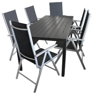 Wer seiner Terrasse eine sehr schöne Optik verleihen möchte, der kann hierfür diese Gartengarnitur nutzen, die aus 7 Teilen besteht. Diese besteht aus einem Tisch , der mit einer Polywood Tischplatte versehen ist und 6 zusammenklappbaren Stühlen, die durch die Textilbespannung, sehr bequem sind. Da diese Garnitur sehr solide verarbeitet ist, kann diese nicht nur im Haus, sondern ebenso auf der Terrasse oder im Garten aufgestellt werden.