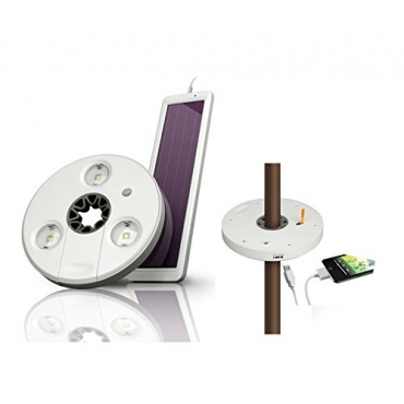Die 98335 Solar Sonnenschirm Beleuchtung ist neu auf dem Markt und passend für diesen Sommer. So lädt sich das Gerät einfach über den Tag per Sonnenenergie und Solar auf und sorgt dann dafür, dass bei Dunkelheit die drei LEDs das Leuchten beginnen. Zudem kommt dazu, dass ein USB-Ausgang vorhanden ist, wodurch auch Handys, Smartphone, Kamera, etc. aufgeladen werden kann.
