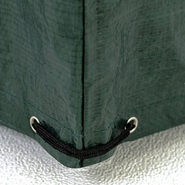Die grüne Abdeckhaube für Gartenmöbel ist aus Hundert Prozent Polyethylengewebe hergestellt, also ein wasserfestes Material . Die Abdeckung wird ganz einfach über die Gartenbar gezogen. Die Schutzhülle ist mit Ösen und Schnüren versehen, um sie damit zu Befestigen und zu Verschnüren.