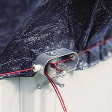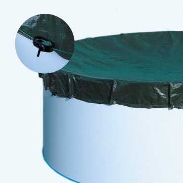 Die stark belastungsfähige Plane besteht aus einem beidseitig beschichteten Polyethylen-Gewebe. Dies garantiert eine lange Lebensdauer. Der Kunststoffanteil unterstützt bei Sonnenschein das Aufheizen des Poolwassers. An den Seitenrändern sind zusätzlich verstärkte Ösen angebracht, durch welche die Abdeckung mit einer Kordel (im Lieferumfang enthalten) festgebunden wird. Mit dem ebenfalls gelieferten Spannschloss, kann die Kordel am Pool fixiert werden, so dass der Wind die Abdeckplane nicht so leicht fortwehen kann.