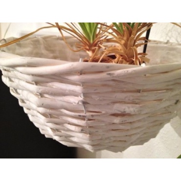 Die Blumenampel ist aus dem Material Weide. In der Farbe Weiß gehalten kommt dies besonders gut zur Geltung. Der geflochtene Hängekorb der Blumenampel wird gehalten von drei silbernen Metallketten, welche jeweils an der Oberseite des Korbes befestigt werden. Am Ende der drei Ketten befindet sich eine Aufhängung, um die Blumenampel einfach und schnell am gewünschten Ort aufhängen zu können. Die ATC Ampel ist neben der Farbe Weiß auch in der Farbe Grau erhältlich und lieferbar.