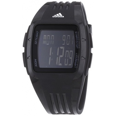 Diese schwarze Adidas Uhr ist trendig und funktional und für jeden tragbar. Sie ziert das Handegelnk des Besitzers und zeigt die Zeit und das Datum und den Tag mittels leuchtender LEDs an. Das Display ist sehr gut ablesbar, auch im Dunklen. rechts und Links sind Tasten mit denen die Uhrzeit und das Datum mittels kurzem Antippen bequem eingestellt wird. Wer diese Uhr sein Eigen nennt kann sehr stolz sein.