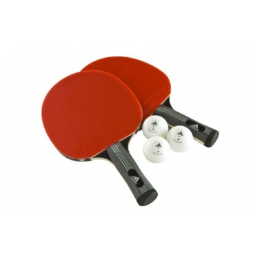 Im Lieferumfang des Schlägersets Comp von adidas sind zwei Schläger sowie drei Tischtennisbälle enthalten. Die Schläger verfügen über einen ITTF-zugelassenen Repulse 500 Belag. Der Belag zeichnet sich durch die innen liegenden Noppen und den 1,5 mm Schwamm aus.