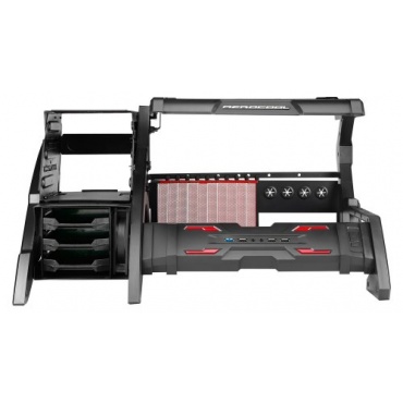 Das Strike-X Air PC Gehäuse von Aerocool macht seinem Namen alle Ehre, denn Luft ist das gefühlte Hauptelement, während das Gehäusematerial auf ein Minimum reduziert wird. Dieses Gehäuse ist sicherlich nicht die typische Wahl für einen Computer, hat aber durchaus seine Daseinsberechtigung. Durch die offene Bauart können Komponenten sehr schnell ein- und ausgebaut werden. Das wird beispielsweise auch durch die drei Hot-Swap-Einbauschächte unterstrichen. Daher eignet sich das Strike-X Air optimal zum Test von Komponenten und kommt dabei vor allem bei der Luftzufuhr nicht in Verlegenheit.