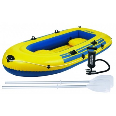 Sehr robust ist das Schlauchboot aus Vinyl hergestellt. Befüllt und entleert wird das Schlauchboot über ein Ventil. Das Schlauchboot ist mit zwei Halterungen für Paddel ausgestattet. Die für die Fortbewegung notwendigen Paddel, gehören beim Schlauchboot zum Zubehör. Zum Zubehör beim Schlauchboot gehört auch eine Luftpumpe. Das Schlauchboot bietet viel Platz für bis zu vier Personen, bei Abmessungen von 305 x 136 x 42 cm. Farblich ist das Schlauchboot in einem gelben Farbton gehalten.