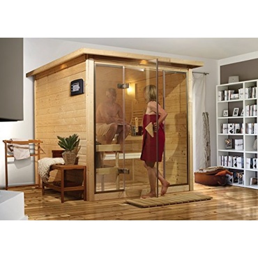 Der Ofen ist mit einer externen Steuerung ausgestattet. Die Außenmaße der Sauna sind 221 x 198 cm in B x T das Sockelmaß beträgt 193 x 184 cm in B x T. Mit in der Sauna enthalten sind 2 Liegen, die mit 250 kg belastbar sind. Diese Sauna wird jeden begeistern und für anregende wie auch entspannende Stunden sorgen. Die beiden Ganzglas-Fenster ergeben eine Front. So kann man beim Saunieren einen schönen Ausblick genießen.