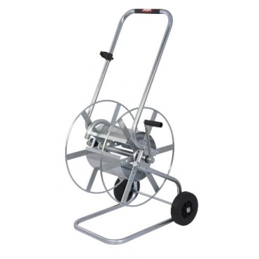 - Der Schlauchwagen ist sehr stabil, auch mit 60 m Schlauch ist er noch gut transportierbar, er ist platzsparend und doppelt gelagert, er verfügt über einen zentralen Wasserdurchlauf