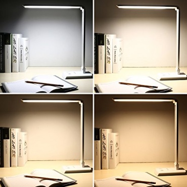 - sehr platzsparende Schreibtischlampe, Lampenarm ist faltbar, dimmbares Licht, Helligkeitsstufen zwischen 300 und 800 Lumen vorhanden, Lampenkopf um 320 Grad drehbar, 4 Farbtemperaturen auswählbar, Energieklasse A+ für Strom sparen, Bedienungsanleitung im Lieferumfang, gute Lampenlebensdauer, Arbeitstemperatur mit sehr großem Spielraum