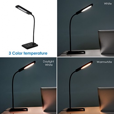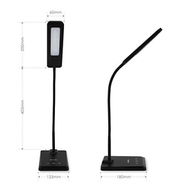 Das moderne Design der Albrillo 6W LED Schreibtischlampe kommt ohne physische Schalter aus, bedient wird die Lampe durch ein Sensorfeld mit beleuchteten Touchtasten. Hier lassen sich nicht nur drei verschiedenen Beleuchtungsstärken einstellen, sondern jeder auch noch eine von drei verschiedenen Lichtfarben (kalt, neutral, warm) zuweisen. Eignet sich kühleres Licht eher für konzentriertes Arbeiten, so ist die wärmere Farbe ideal zur Entspannung der Augen.