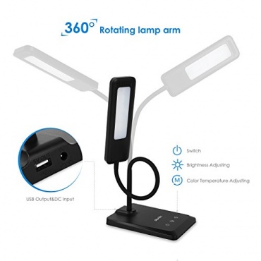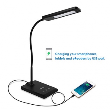 Tipp: Die Lampe speichert die letzten Einstellungen - mit niedriger Beleuchtungsstärke und warmer Farbtemperatur wird aus der Schreibtischlampe eine Nachttischlampe. Die Bedienelemente sind beleuchtet und am integrierten USB Anschluss lässt sich das Smartphone über Nacht bequem aufladen.