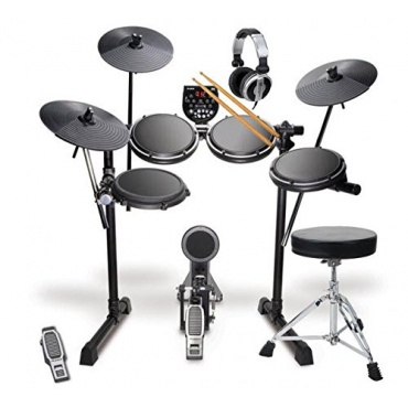 - Nicht nur der Kopfhörer, sondern auch der passende Drumhocker, als auch die Sticks gehören zu diesem Drum-Set einfach mit dazu. Abgesehen davon, überzeugt das Set auch mit einer super Farbe und einem guten Klang