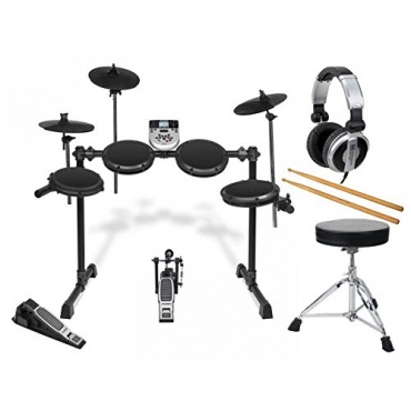- Das Set besitzt ein integriertes Metronom. Zusätzlich sind Kabel, Netzteil, Hocker, Kopfhörer und Sticks im Lieferumfang dieses Sets enthalten. Dieses Set ist geeignet, um Computer und andere Medien anzuschließen und um eigene Songs aufzunehmen.