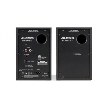Der Alesis Elevate 3 verfügt über einen 3 Tieffrequenzlautsprecher und einem 1 ´ Waveguide - Hochtöner mit Seidenkalotte. Damit kann ein breiter Sweet Spot in der Abhörsituation erzielt werden. Und die Audioreflektionen werden dadurch minimiert. Der optionale Bassboost wird durch einem Schalter auf der Rückseite vom Gehäuse aktiviert. Durch eine integrierte Bassreflexöffnung wird der Bassboost noch verstärkt. Zusätzlich verfügt der Alesis Elevate 3 einen 3,5 mm Ausgang. An diesem kann ein Subwoofer angeschlossen werden.