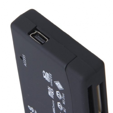 Der schwarze All-in-1 USB Kartenleser für SD Multicards unterstützt USB 2.0 und wird mit einem in der Lieferung enthaltenen USB-Anschlusskabel in Betrieb genommen. Er erlaubt eine gute Bequemlichkeit, da er alle Karten unterstützt einschließlich Mini- SD, sowie MMC mini und micro-SD / T-Flash.