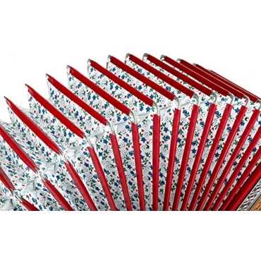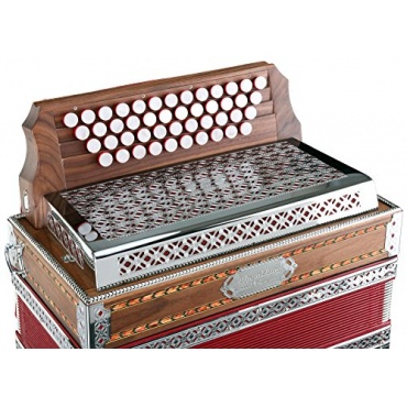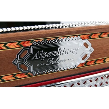 Die Deluxe Harmonika von Alpenklang überzeugt durch ihre herausragenden musikalischen Eigenschaften und zeichnet sich ebenso durch eine wunderschöne Optik aus, die zu einer gemütlichen Stimmung beiträgt. Der Korpus ist aus edlem Nussbaumholz geschaffen und der Balg ist mit einem romantischen Blütenmuster verziert, der an steirische Apenwiesen erinnert. Zusätzliche Verzierung bilden kunstvolle Intarsienarbeiten und Metallbeschläge. Die hochwertige Verarbeitung hochwertiger Bauteile garantiert, dass dieses Instrument dem Musikliebhaber viele Stunden ungetrübten Musik-Vergnügens schenkt.