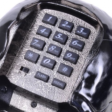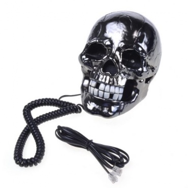 Das Althemax® schnurgebundene Schädel Telefon besticht durch sein außergewöhnliches Design in Schädelform und das glänzende Material. Wenn das Telefon klingelt, leuchten die Augen des Totenkopfes. Das Hand-Teil ist der vordere Teil des Schädels und ist leicht abnehmbar. Das Display befindet sich in Inneren des Schädels.