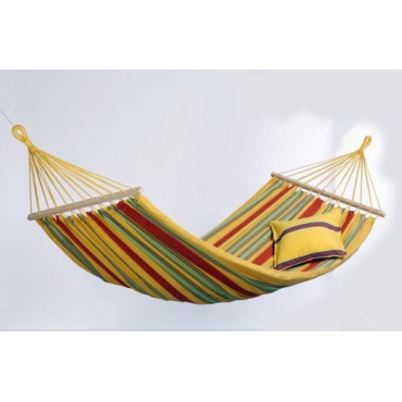 Die vanilla farbene Amazonas EL-1072000 Aruba Hängematte hat eine bequeme Liegefläche von 210 x 120 Zentimeter. Die