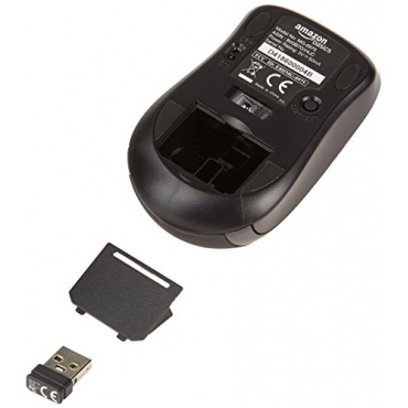 AmazonBasics Schnurlose PC Maus mit Nano-Empfänger verfügt über eine leistungsstarke und zuverlässige kabellose Verbindung mit 2,4 GHz. Der Nano-Empfänger wird an den USB-Port des PCs angeschlossen und kann bei Nichtverwendung einfach und sehr praktisch im Inneren der Maus verstaut werden. Geliefert wird der Empfänger sicher im Inneren der Mouse. Die LED Anzeige auf der Mouse zeigen an wenn die Batterie leer wird.