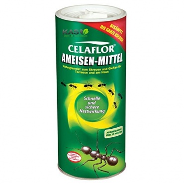 Das äußerst ergiebige und lang anhaltende Ameisenmittel von Celaflor, welches zur Abwehr von Ameisen hergestellt wurde, kann entweder als Streumittel angewendet werden oder aber auch als Gießmittel verwendet werden. Es wird in einer 500 g Dose geliefert, so kann das Granulat sofort zum Streuen eingesetzt werden. Wenn man es als Gießmittel benutzen möchte, sollte man die Richtlinien des Herstellers zum Mischen des Produktes beachten. Es kann auf Straßen sowie auf Terrassen oder im Gartenbereich angewendet werden.