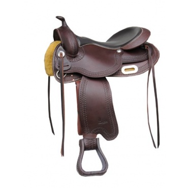 Der Westernsattel ist baumlos, dadurch passt sich der Sattel dem Pferderücken an. Ein weiterer Vorteil, den dieser baumlose Sattel bietet, ist das er leichter ist als andere Westernsättel. Geeignet ist der Amesbichler Westernsattel für mittel starke Pferde. Die Sattelblätter wie auch die Fender sind bei diesem Sattel abgerundet, die Steigbügel sind mit Leder überzogen.