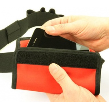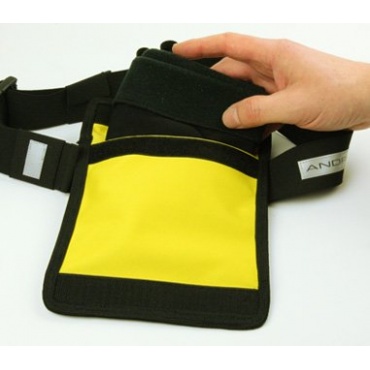 Die Tasche verfügt über zwei Größenstufen. Über einen Klettverschluss gelangt man von einer zur anderen. So lässt sich die Höhe von 8,5 cm auf 15,5 cm und die Tiefe von 2,0 cm auf 3,5 cm steigern. Das Tragen lässt sich über ein Gummiband mit einem Schnellverschluss realisieren. Auf dem nassfesten Polyesterstoff sind Reflektoren eingearbeitet, die bei Dunkelheit die Wiedererkennbarkeit erhöhen. Weitere Schlaufen gewähren Stauraum für Riegel oder ähnliches.