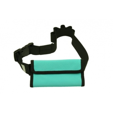 Die türkise Hüfttasche besteht aus Polyesterstoff. Dieser ist nassfest und pflegeleicht. In die Tasche wurden Reflektoren eingearbeitet, sodass auch nachts die Sicherheit gewährleistet wird. Das Öffnen und Schließen erfolgt über einen Schnellverschluss an einem stabilen Gummiband. Weiterhin ermöglichen fünf Schlaufen die Mitnahme von Riegeln und Energy-Gels zur Kraftregeneration. Kleine und große Gegenstände lassen sich mitnehmen.