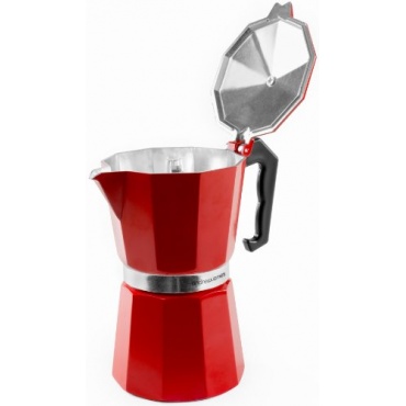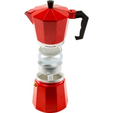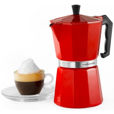 Der 6 Tassen Espressokocher von Andrew James ist in knalligem Rot das Highlight jeder Küche. In wenigen Minuten können bis zu 6 Tassen Espresso zubereitet werden. Der Espressokocher aus Aluguss ist für alle herkömmlichen Hitzequellen geeignet (ausser Induktion).
