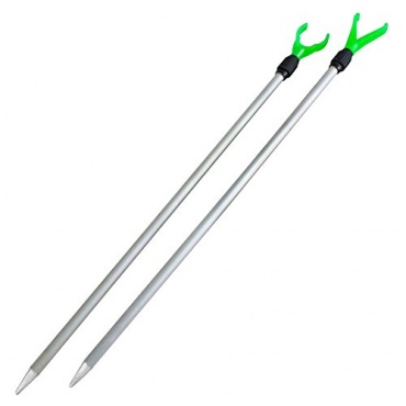 Diese verfügen über angespitzte Enden und für den schnellen Ansitz sind die Erdspeere mit der Auflage ideal geeignet. Die hochwertigen Aluminium Rutenhalter sind wegen der variablen Länge vielseitig einsetzbar und mit einem Drehverschlusses leicht arretierbar. Der Verschluss hält ganz besonders fest und lässt sich auch durch Fischbiss nicht zusammenschieben. Ein Dorn am Ende macht das Einbringen in den Boden leichter. Eine der Auflagen hat eine V-Form die andere eine U-Form. Beide Varianten nehmen die Angelrute sehr sicher auf. Zur Freiheit der Angelschnur wurde eine Furche für diese in der Auflage ausgebuchtet.