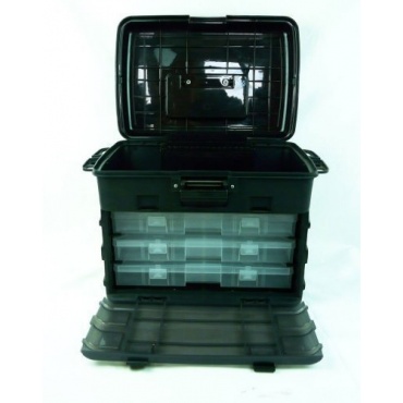 Der Angelkoffer Gerätekasten Zubehörbox TACKLEBOX Kanana wurde vom Hersteller mit drei Einlageschalen beziehungsweise Sortimentschubladen mit den Abmessungen 37.1 x 21,7 x 5 cm, einem großen, tiefen Oberfach und einem zusätzlichen Hängefach ausgestattet. Die Box bietet ausreichend Platz, um das gesamte Angelzubehör übersichtlich zu verstauen. Darüber hinaus kann die Gerätebox mit dem stabilen Tragegriff zur Aufbewahrung von Kleinteilen, beispielsweise in der Garage oder in der Hobbywerkstatt, von Handarbeitsmaterialien und Bastelutensilien verwendet werden.
