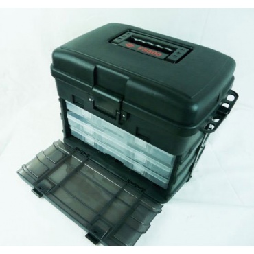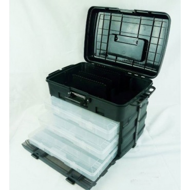 Der Angelkoffer Gerätekasten Zubehörbox TACKLEBOX Kanana bietet viel Platz das Angelzubehör. Zur übersichtlichen Aufbewahrung wurden in die Box drei Einlageschalen beziehungsweise Sortimentschachteln mit den Abmessungen 37.1 x 21,7 x 5 cm, ein Hängefach und ein geräumiges Oberfach integriert. Die Tacklebox wurde aus qualitativ hochwertigen Polypropylen hergestellt. Im Test überzeugte der Gerätekasten durch eine solide Verarbeitung, eine lange Lebensdauer und durch Funktionalität.