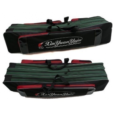 Die Angeltasche von KANANA ist eine optisch schöne Angeltasche mit schicker Aufschrift. Mit zwei Innenfächern bietet diese 90 Zentimeter lange Tasche Platz für 2 bis 4 Teleskopruten. Geöffnet und geschlossen werden die Fächer mittels leichtgängigem Reißverschluss. An der Außenseite befinden sich drei weitere Fächer für das Verwahren von Angelständer oder Schirm. Zudem können in den kleineren Seitenfächern kleinere Boxen und anderer Kleinkram zum Angeln organisiert untergebracht werden.