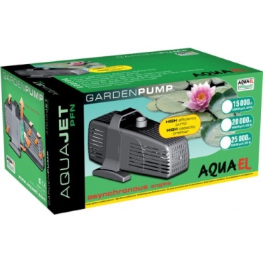Die Pumpe von Aquael (Modell PFN 20000) kann als Teich- oder Brunnenpumpe dienen. Die Pumpe hat eine maximale Förderhöhe von 7 m und eine Fördermenge von 20.000 l/h. Die Länge des Anschlusskabels der Gartenteichpumpe liegt bei 10 m.