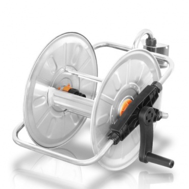 - die Schlauchtrommel besteht aus verzinktem Stahl, sie hat eine langlebige Konstruktion, mit dem abgewinkelten Schlauchanschluss wird ein Verdrehen und Knicken des Schlauches verhindert, sehr praktisch
