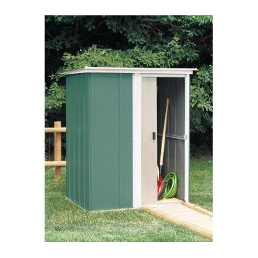 Das Arrow Gerätehaus Leipzig von Pergart ist komplett aus Metall gefertigt. Das Gerätehaus hat eine Fläche von ca. 143 x 115 cm und eine Höhe von ca. 180 cm. Somit bietet es genügend Platz zum Verstauen und Aufbewahren diverser Gartengeräte sowie Werkzeug oder Spielzeug. Das Haus hat ein Flachdach und eine Schiebetür.