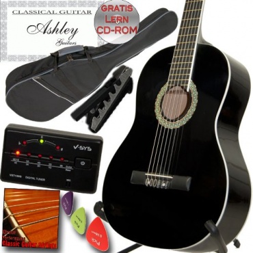 Die Ashley Gitarre ist eine besondere Gitarre. Nicht nur, weil sie günstig zu bekommen ist, sondern weil sie Anfängern, als auch Linkshändern ermöglicht, dass Gefühl zu haben, eine Profi Gitarre zu bespielen. Mittels Lern-CD-Rom kann das spielen ganz leicht erlernt werden.