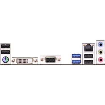 Mit dem H81M-DGS stehen zwei PCIe-Slots für Erweiterungskarten zur Verfügung. Der PCIe x16 Bus bietet beispielsweise Möglichkeiten für den Anschluss einer Grafikkarte. Eine zusätzliche Erweiterungskarte findet in dem kleineren x1-Slot Platz. OnBoard bringt das H81M-DGS bereits eine Grafikeinheit mit, die sowohl über einen VGA- als auch über einen DVI-Anschluss verfügt. Damit eignet sich dieses Mainboard auch hervorragend für Bürocomputer. Außerdem stehen unter anderem bereits Audioanschlüsse, sowie eine Ethernet-Buchse zur Verfügung. Vier USB 2.0 und zwei USB 3.0 Ports stehen ebenfalls direkt zur Verfügung.