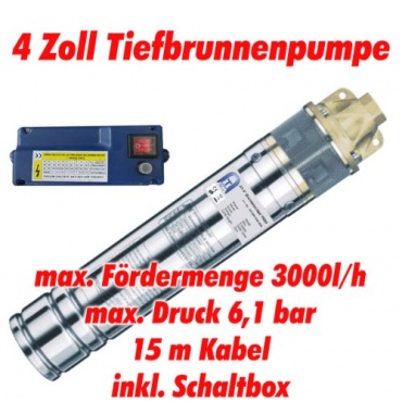 - Brunnenpumpe für sehr tiefe Brunnen geeignet. Alle wasserführende Teile aus Edelstahl oder Messing. Externe Schaltbox mit thermischen Motorschutzschalter und Netzschalter.