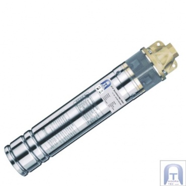Das Gehäuse der AT- 4" Brunnenpumpe besteht aus hochwertigem Edelstahl und das Laufrad ist aus Messing gefertigt. Diese Pumpe ist besonders zum Fördern von Wasser aus sehr tiefen Brunnen mit einem Durchmesser von 100 Millimetern geeignet. Bis zu einer maximalen Förderhöhe von 60 Metern beträgt die Fördermenge bis zu 3000 Liter Wasser. Das Ansaugsieb über dem Pumpenfuß schützt die Brunnenpumpe vor den Partikeln aus Sand und Mergel.